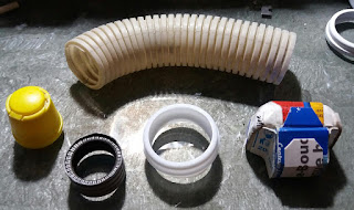 2 sizes of washing m/c drain pipes ( just look on the lovely internal detail on the grey pipe )